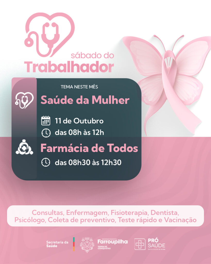 Durante a manhã haverá atendimento médico, fisioterapia, odontologia, psicologia e enfermagem, além de coleta de exames preventivos, orientações e encaminhamentos necessários à saúde da mulher.