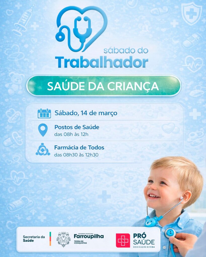 O Programa Sábado do Trabalhador, que será realizado no próximo sábado, 14 de março, terá como foco a saúde das crianças, oferecendo uma programação especial voltada a este tema. A iniciativa é promovida pela Prefeitura de Farroupilha, por meio da Secretaria de Saúde, em parceria com a Associação Farroupilhense Pró-Saúde.